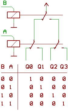 A, B select one output (Q0, Q1, Q2 Q3) to be routed to the supply voltage...
