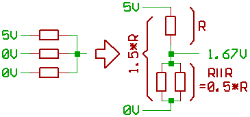 a current of I = 5V / (1.5 * R)
