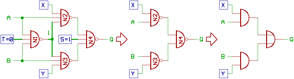 Q = A : T=0, S=1, X=1, Y=0 Q = B : T=0, S=1, X=0, Y=1 Q = A | B : T=0, S=1, X=1, Y=1 Q = 0 : T=0, S=1, X=0, Y=0