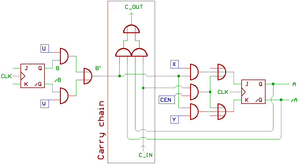 U=1, V=0, X=0, Y=0, CEN=1: A''=A'^carry.