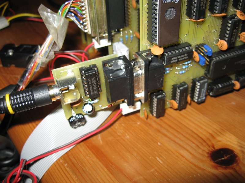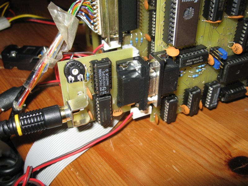 | To use the vdc board with a standard TV set for example, a so-called "composite video" signal must be generated, that includes all three video, horizontal sync and vertical sync signals. This board is derived from the "PET Video Mixer" by the PET users club of England. | |