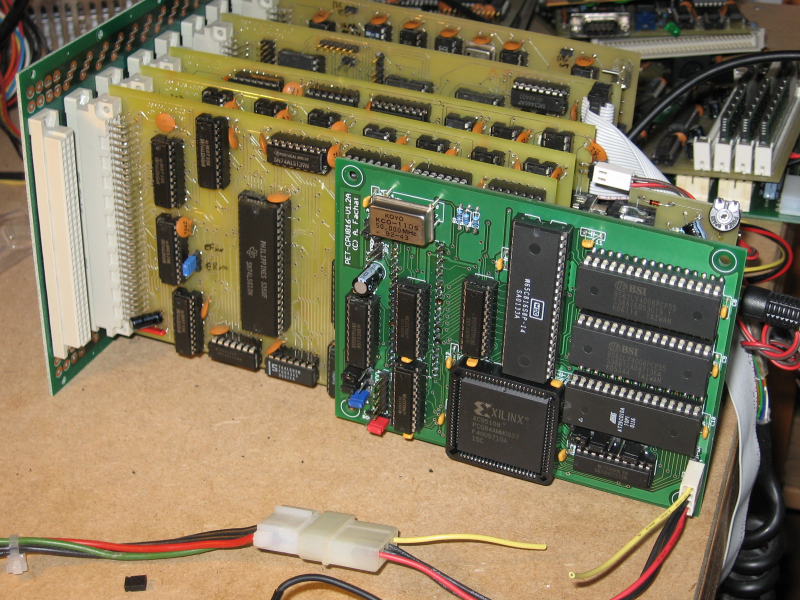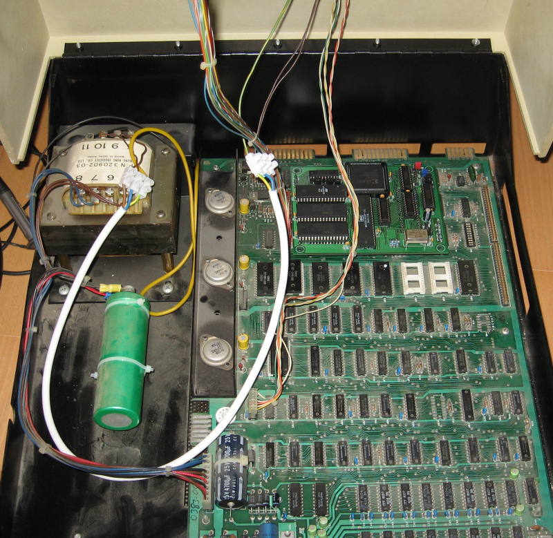 The test system with the board installed. The white connector at the left upper end of the board is an additional power connector, going to the tape port