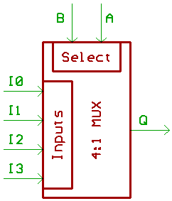 Now we take a 4:1 Multiplexer, and "turn" the box