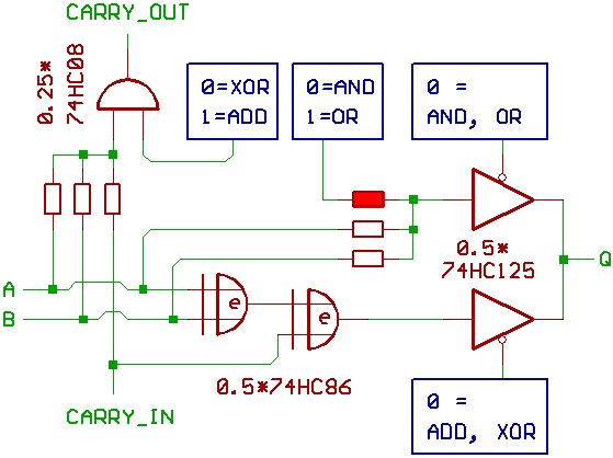 Here a schematic for one Bitslice of the ALU: