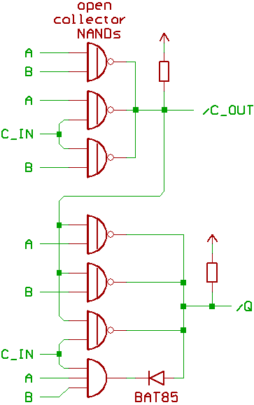 (since we don't have an open collector NAND gate with