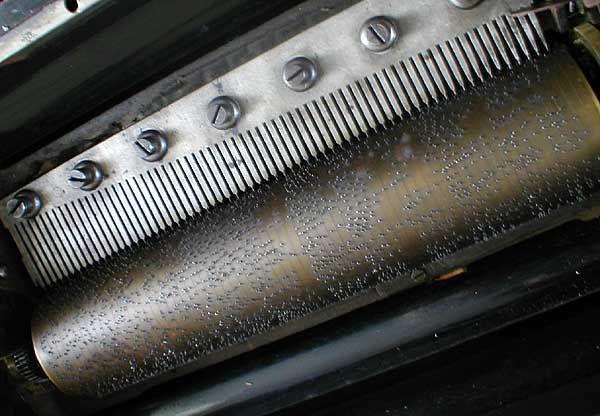 Tiny steel pins on the surface trigger parts of a steel "comb",