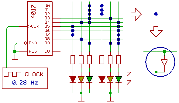 Now we take the diode matrix from the 4017 example, and turn it into a