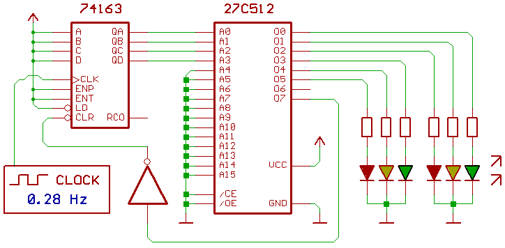 27C512 (or 27512) is a 64 kB EPROM: 16 address lines, a 0_active chip select
