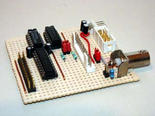 The connector on the top left of the diagram is from my own 6502 boards (see sbc project) and is as it is for two reasons. It's easy to wire on a stripboard layout and I have a lot of 26 way ribbon, headers and plugs. All the signals are directly from the 6502 except /SEL0 and /SEL1 which are used to select the block $F1xx with /SEL0 = 1 and /SEL1 = 0.