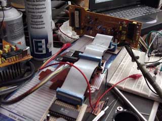 The 74LS74 is used to latch the two lowest bits of the data bus during write access to the interface. The reset line is connected so that both of these outputs are set at startup (this disables the I2C bus until required). This is very similar to my AT keyboard with the exeption that reset sets the opposite state.
