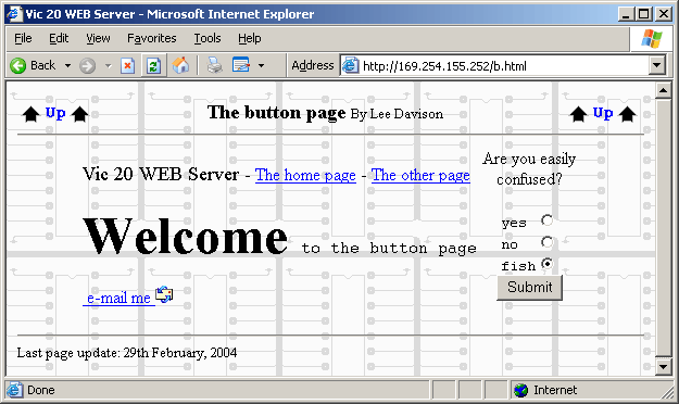 These images were created by using Internet Explorer to access the Vic 20 as you would any web site, then grabbing the window to the clipboard and then rendering that image as a 256 colour portable network graphic.