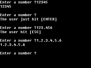 Getstring is a small function to return a string consisting of only user defined valid characters. Any invalid characters are ignored and not echoed to the screen. |