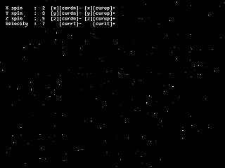 Stars is a swooping, swirling starfield with adjustable swoop (velocity) and swirl (spin). Requires EASy68K 3.6 or later. Updated V1.01 |