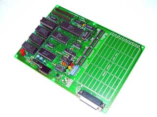 The board shown has had the three 2k RAMs replaced with battery backed RAM and the EPROM has been replaced by an 8k RAM giving 14k total on this board.