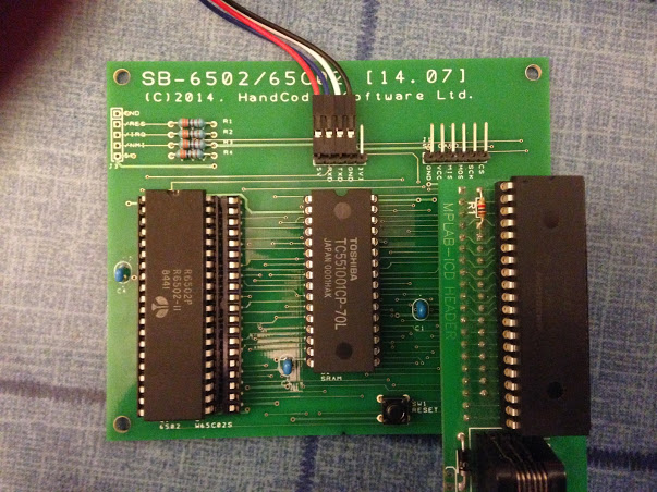 The photo below shows my 6502 board with the PIC in a Microchip debugging header. When the PIC firmware is complete the chip will be placed directly in the 40 pin socket underneath.